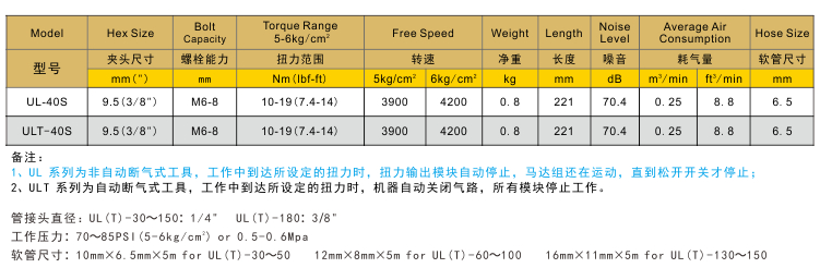 扭力氣動扳手UL-40S/ULT-40S