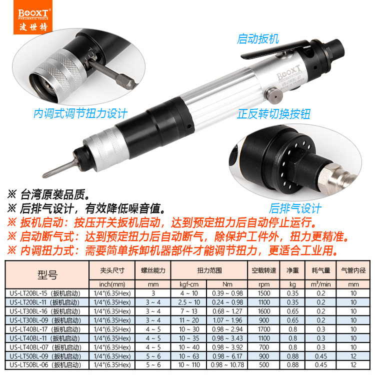 東莞強勁五金工具有限公司提供臺灣BOOXT波世特氣動工具,離合器風(fēng)批US-LT20BL-15系列廠家直銷,首件享特價。咨詢熱線:4008301980