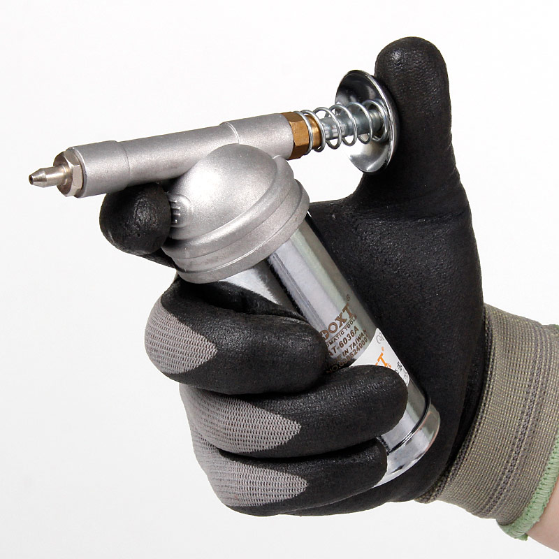 2、手動加油:機器持續(xù)使用時,標(biāo)準每15分鐘加一次油,斷開氣源后,從進氣接頭處加注約5滴,大機器適當(dāng)增加。另外機器使用前應(yīng)先加油空轉(zhuǎn)幾秒后再使用,晚上下班前,應(yīng)再次加注氣動油并空轉(zhuǎn)三秒后妥善放置機器;