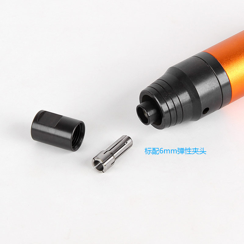 • 產(chǎn)品參數(shù): 夾頭能力:M3/6 空載轉(zhuǎn)速:20000rpm 馬達(dá)功率:0.3HP 耗 氣 量:84L/min 全 長:151mm 重 量 : 0.4kg 噪 音 值:83.5db(A)