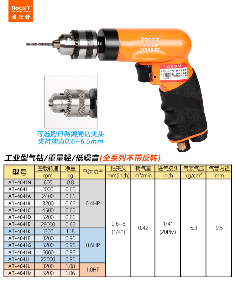 東莞市強勁五金工具有限公司提供臺灣BOOXT波世特品牌氣動工具,4500轉(zhuǎn)航空級氣鉆AT-4041C廠家直銷,首件享特價。咨詢熱線:4008301980
