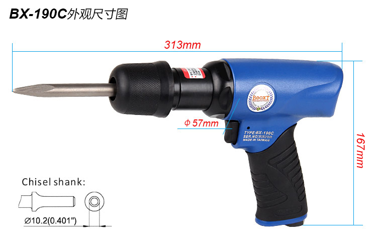 東莞市強勁五金工具提供臺灣BOOXT波世特品牌,減震型氣動鏟BX-190C廠家直銷,首件享特價。咨詢熱線:4008301980