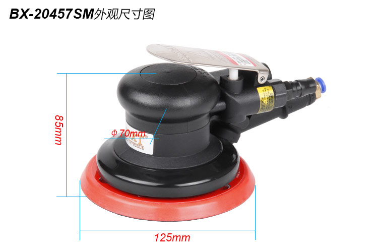 • 產(chǎn)品參數(shù): 底盤(pán)尺寸:125mm (5寸) 空載轉(zhuǎn)速:12000rpm 偏擺直徑:5mm 工具尺寸:85*125mm 重 量:0.74kg 耗 氣 量:0.48m3/min 【專(zhuān)業(yè)型】