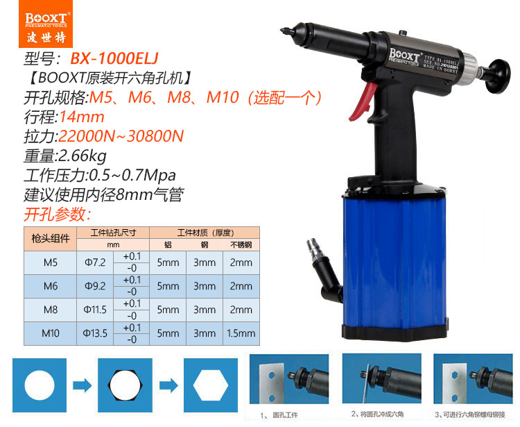 東莞市強勁五金工具有限公司提供BOOXT波世特品牌氣動工具,氣動開六角孔槍BX-1000ELJ廠家直銷,首件享特價。咨詢熱線:4008301980