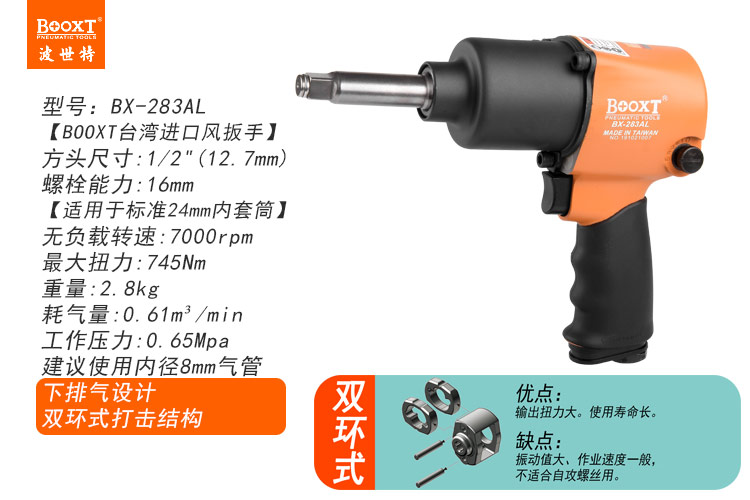 東莞市強(qiáng)勁五金工具有限公司提供臺(tái)灣BOOXT波世特品牌氣動(dòng)工具,加長軸氣動(dòng)扳手BX-283AL廠家直銷,首件享特價(jià)。咨詢熱線:4008301980