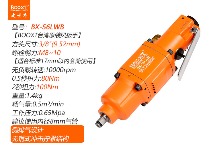 東莞市強勁五金工具有限公司提供臺灣BOOXT波世特品牌氣動工具,直柄氣動扳手BX-S6LWB廠家直銷,首件享特價。咨詢熱線:4008301980