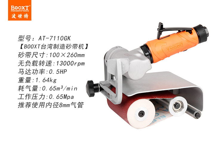 東莞市強勁五金工具提供臺灣BOOXT波世特品牌,氣動砂帶機AT-7110GK廠家直銷,首件享特價。咨詢熱線:4008301980