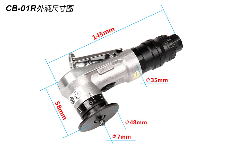 • 產(chǎn)品參數(shù): 倒角角度:R1.5 可調(diào)深度:0.1-0.9mm 空載轉(zhuǎn)速:28000rpm 耗 氣 量:0.40m3/min 全 長(zhǎng):145mm 重 量:0.44kg 【倒R圓角】