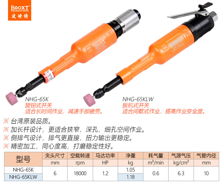 東莞市強勁五金工具有限公司提供臺灣BOOXT波世特品牌氣動工具,加長氣動磨頭機NHG-65K廠家直銷,首件享特價。咨詢熱線:4008301980