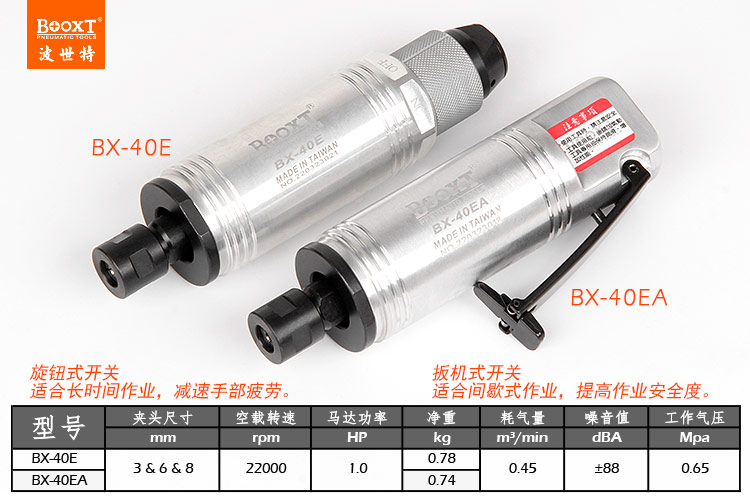 東莞市強(qiáng)勁五金工具有限公司提供臺灣BOOXT波世特品牌氣動工具,大功率刻磨機(jī)BX-40EA廠家直銷,首件享特價(jià)。咨詢熱線:4008301980