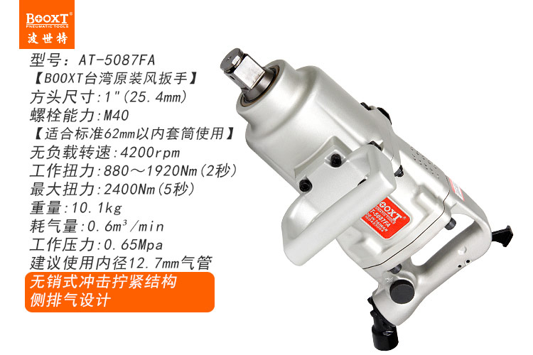 東莞市強勁五金工具有限公司提供臺灣BOOXT波世特品牌氣動工具,無銷式風(fēng)炮AT-5087FA廠家直銷,首件享特價。咨詢熱線:4008301980