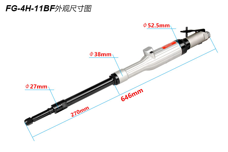 • 產品參數(shù): 夾頭能力:M3,6,8 【標配M6】 馬達功率:0.99HP 空載轉速:12000rpm 全 長:646mm 桿 長:270mm 桿 直 徑:27mm 重 量 : 2.5kg 耗 氣 量:0.8m3/min 【工業(yè)型/大馬力/扳機開關】