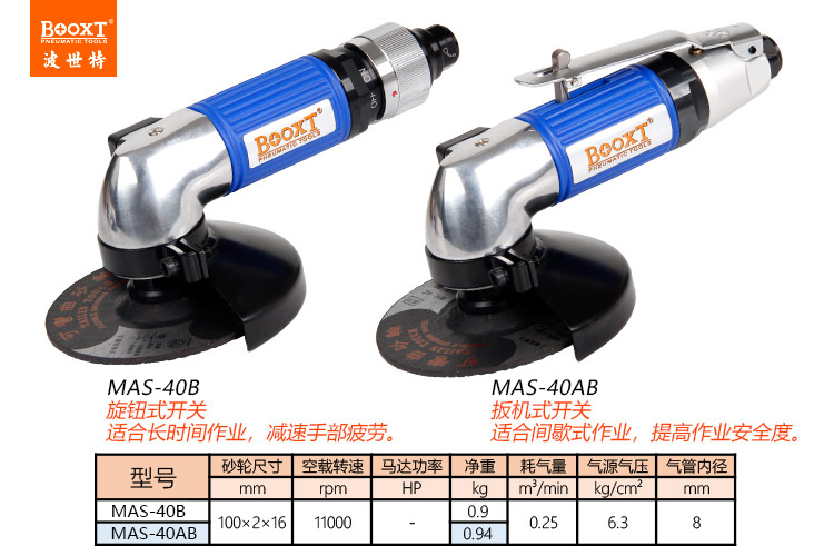 東莞市強(qiáng)勁五金工具有限公司提供臺灣BOOXT波世特品牌氣動工具,輕型風(fēng)動角磨機(jī)MAS-40AB廠家直銷,首件享特價。咨詢熱線:4008301980