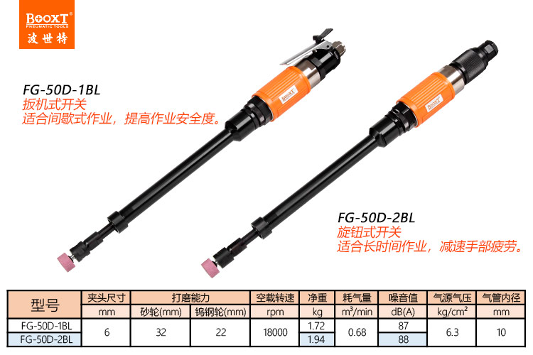 東莞市強(qiáng)勁五金工具有限公司提供臺(tái)灣BOOXT波世特品牌氣動(dòng)工具,加長(zhǎng)氣動(dòng)風(fēng)磨機(jī)FG-50D-1BL廠家直銷,首件享特價(jià)。咨詢熱線:4008301980