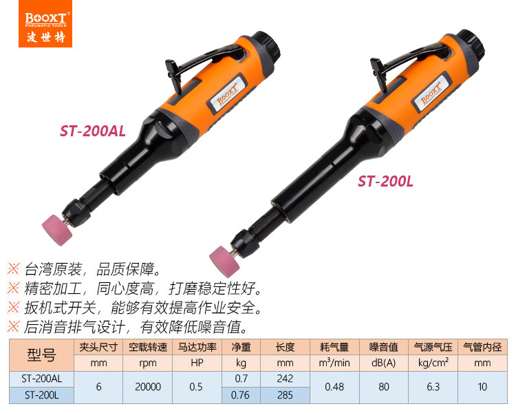 東莞市強勁五金工具有限公司提供臺灣BOOXT波世特品牌氣動工具,加長氣動風磨機ST-200L廠家直銷,首件享特價。咨詢熱線:4008301980
