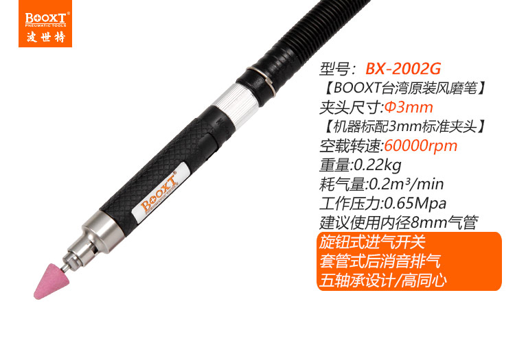 東莞市強勁五金工具有限公司提供臺灣BOOXT波世特品牌氣動工具,五軸承風磨筆BX-2002G家直銷,首件享特價。咨詢熱線:4008301980