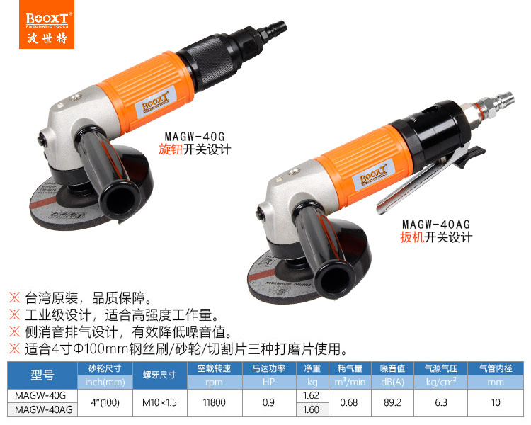 東莞市強勁五金工具有限公司提供臺灣BOOXT波世特品牌氣動工具,4寸風動角磨機MAGW-40AG廠家直銷,首件享特價。咨詢熱線:4008301980
