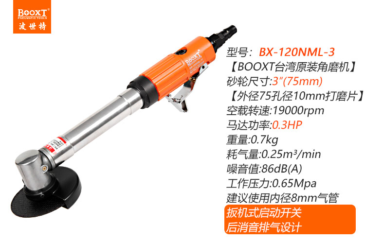 東莞市強勁五金工具有限公司提供臺灣BOOXT波世特品牌氣動工具,加長氣動角磨機BX-120NML-3廠家直銷,首件享特價。咨詢熱線:4008301980