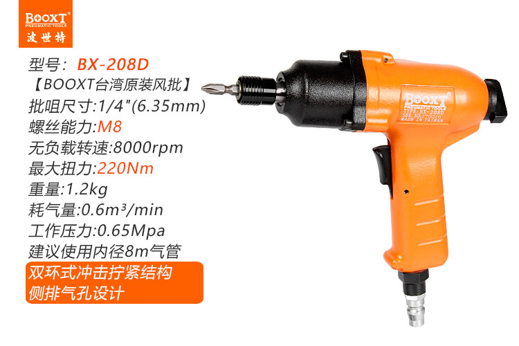 東莞市強勁五金工具有限公司提供臺灣BOOXT波世特品牌氣動工具,氣動螺絲刀BX-208D廠家直銷,首件享特價。咨詢熱線:4008301980