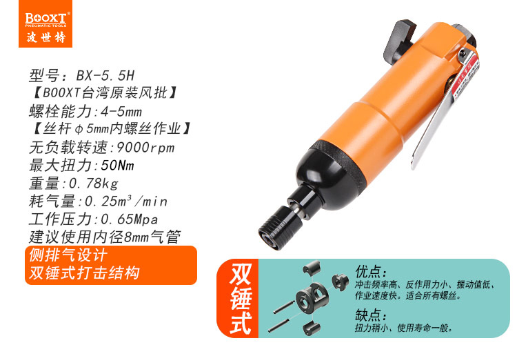 東莞市強(qiáng)勁五金工具有限公司提供臺(tái)灣BOOXT波世特品牌氣動(dòng)工具,風(fēng)批BX-5.5H廠家直銷,首件享特價(jià)。咨詢熱線:4008301980