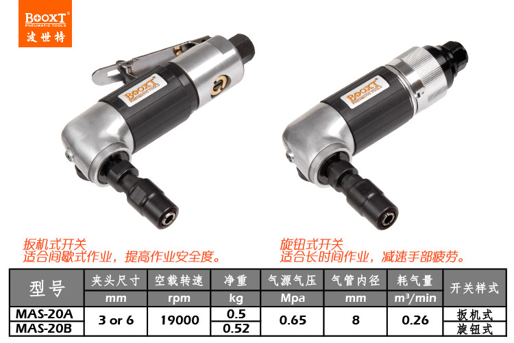 東莞市強(qiáng)勁五金工具有限公司提供臺(tái)灣BOOXT波世特品牌氣動(dòng)工具,直角氣磨機(jī)MAS-20B廠家直銷,首件享特價(jià)。咨詢熱線:4008301980